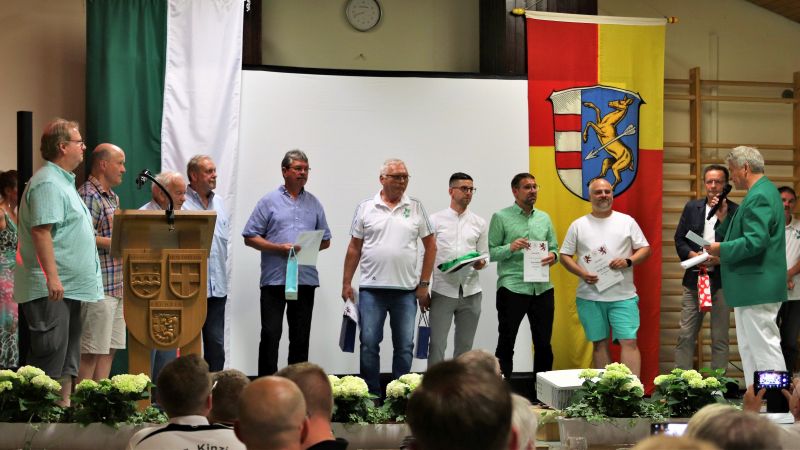 Die anfänglichen Grußworte der Ehrengäste hielten dabei schon einige Überraschungen bereit: Erster Kreisbeigeordneter Oliver Grobeis war in Vertretung des Landrates Frank Matiaske gekommen, um Glückwünsche des Odenwaldkreises auszurichten. Im Gepäck hatte er den Ehrenbrief des Landes Hessen für Schmauß, der den Verein seit 2003 als Vorsitzender im Ehrenamt führt und in diesem Sommer Abschied von der Vereinsspitze nehmen wird.