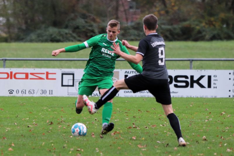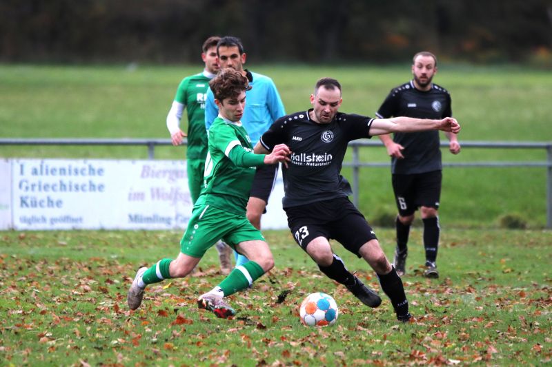 Noah Wolf (links) vom FV Mümling-Grumbach und der Günterfürster Kai Bundschuh im Zweikampf. Am Ende siegt der TSV mit 3:1 und bleibt oben dran. Foto: Herbert Krämer