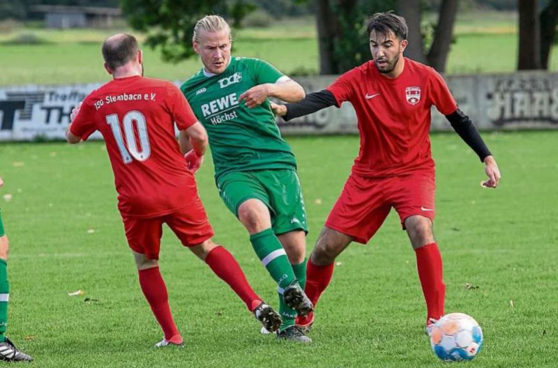 Wassner (10) und Özgün Uysal). Am Ende hieß es im Odenwälder Duell gegen die TSG Steinbach 2:4. Foto: Fernando Baptista